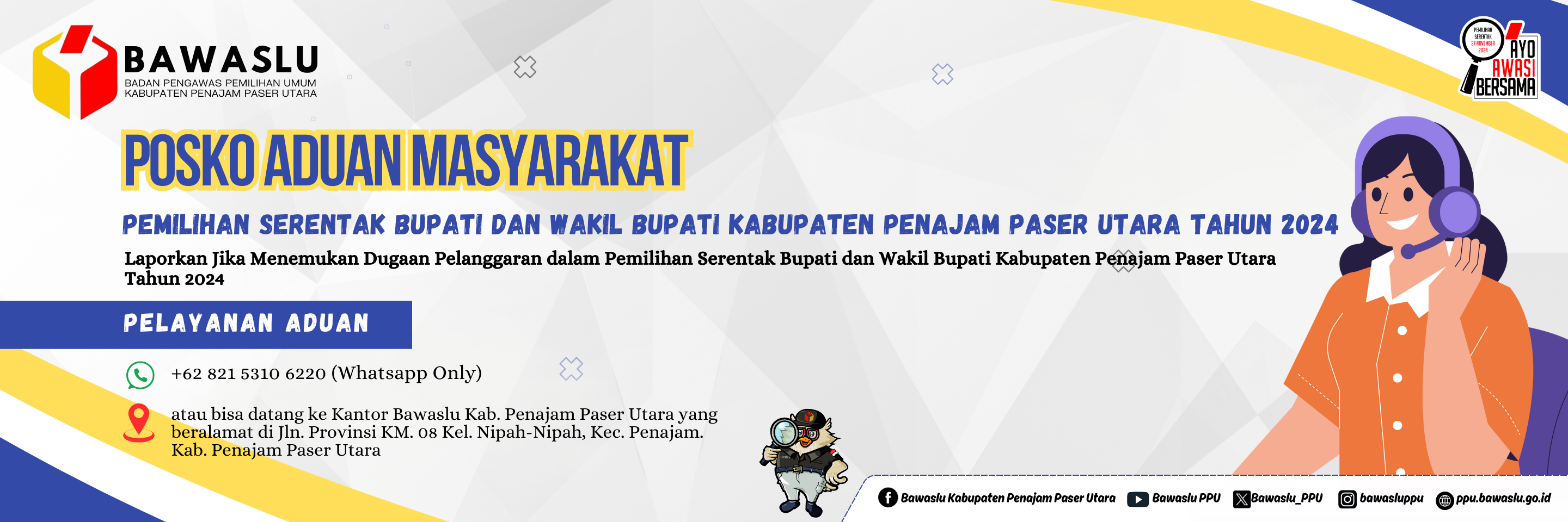 Pengumuman Pengumuman Hasil Seleksi Administrasi Calon PTPS Kabupaten Penajam Paser Utara Lihat Selengkapnya Pengumuman Pengumuman Pendaftaran PTPS Kecamatan Sepaku Lihat Selengkapnya Pengumuman Pengumuman Pendaftaran PTPS Kecamatan Penajam Lihat Selengkapnya Pengumuman Pengumuman Pendaftaran PTPS Kecamatan Babulu Lihat Selengkapnya Pengumuman Pengumuman Pendaftaran PTPS Kecamatan Waru Lihat Selengkapnya Lapor Pelanggaran Pemilu Hasil Pengawasan Tahapan Pemilu 2024 Ajukan Permohonan Sengketa Proses Pemilu Bagaimana Cara Ikut Awasi Pemilu Lapor Hoaks Pemilu Apa Saja Yang Diawasi Pada Tahapan Pemilu Berita Apel Pagi Bawaslu PPU : Tekankan Semangat Pengabdian, Integritas, dan Profesionalitas humas Senin, Januari 26, 2026 - 08:42 Perkuat Pengawasan Kepartaian, Bawaslu PPU Lakukan Update Data SIPOL Semester II 2025 humas Senin, Januari 12, 2026 - 16:12 Bawaslu PPU Soroti Wacana Perubahan UU Pemilu humas Jumat, Januari 9, 2026 - 14:29 Bawaslu PPU Laksanakan Pemeriksaan Bersama Puskesmas Penajam humas Rabu, Januari 7, 2026 - 15:36 Bawaslu PPU Hadiri Rapat Pleno Rekapitulasi dan Penetapan PDPB Triwulan IV Tahun 2025 di KPU Kabupaten PPU humas Senin, Desember 8, 2025 - 15:20 https://sigaplapor.bawaslu.go.id/ https://ppid-ppu.bawaslu.go.id https://sips.bawaslu.go.id/ https://google.com https://jdih.bawaslu.go.id/ Galeri Pencarian Saran dan Pengaduan Saran dan pengaduan dengan untuk kemajuan Bawaslu Ajukan